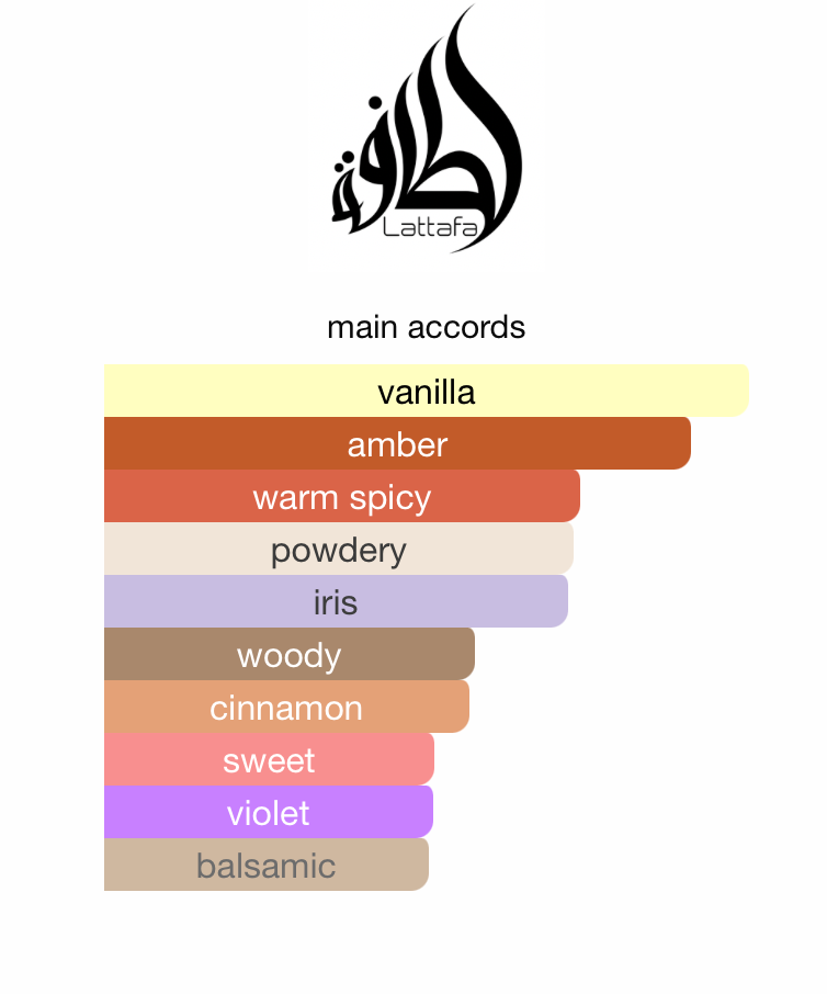 His Confession by Lattafa Perfumes is a Oriental Woody fragrance for men. This is a new fragrance. His Confessionwas launched in 2024. Top notes are Cinnamon, Lavender and Mandarin; middle notes are Iris, Benzoin, Cypress and Mahonial; base notes are Vanilla, Tonka, Amber, Cedarwood, Incense and Patchouli.