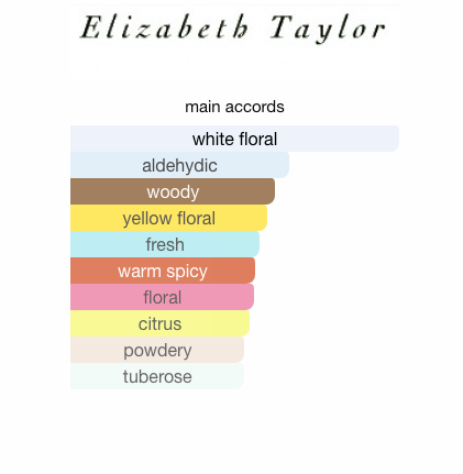 White Diamonds by Elizabeth Taylor is a Floral Aldehyde fragrance for women. White Diamonds was launched in 1991. The nose behind this fragrance is Carlos Benaim. Top notes are Aldehydes, Lily, Neroli, Orange and Bergamot; middle notes are Egyptian Tuberose, Jasmine, Ylang-Ylang, Narcissus, Carnation, Italian Orris Root, Turkish Rose and Cinnamon; base notes are Amber, Musk, Sandalwood, Oakmoss and Patchouli.